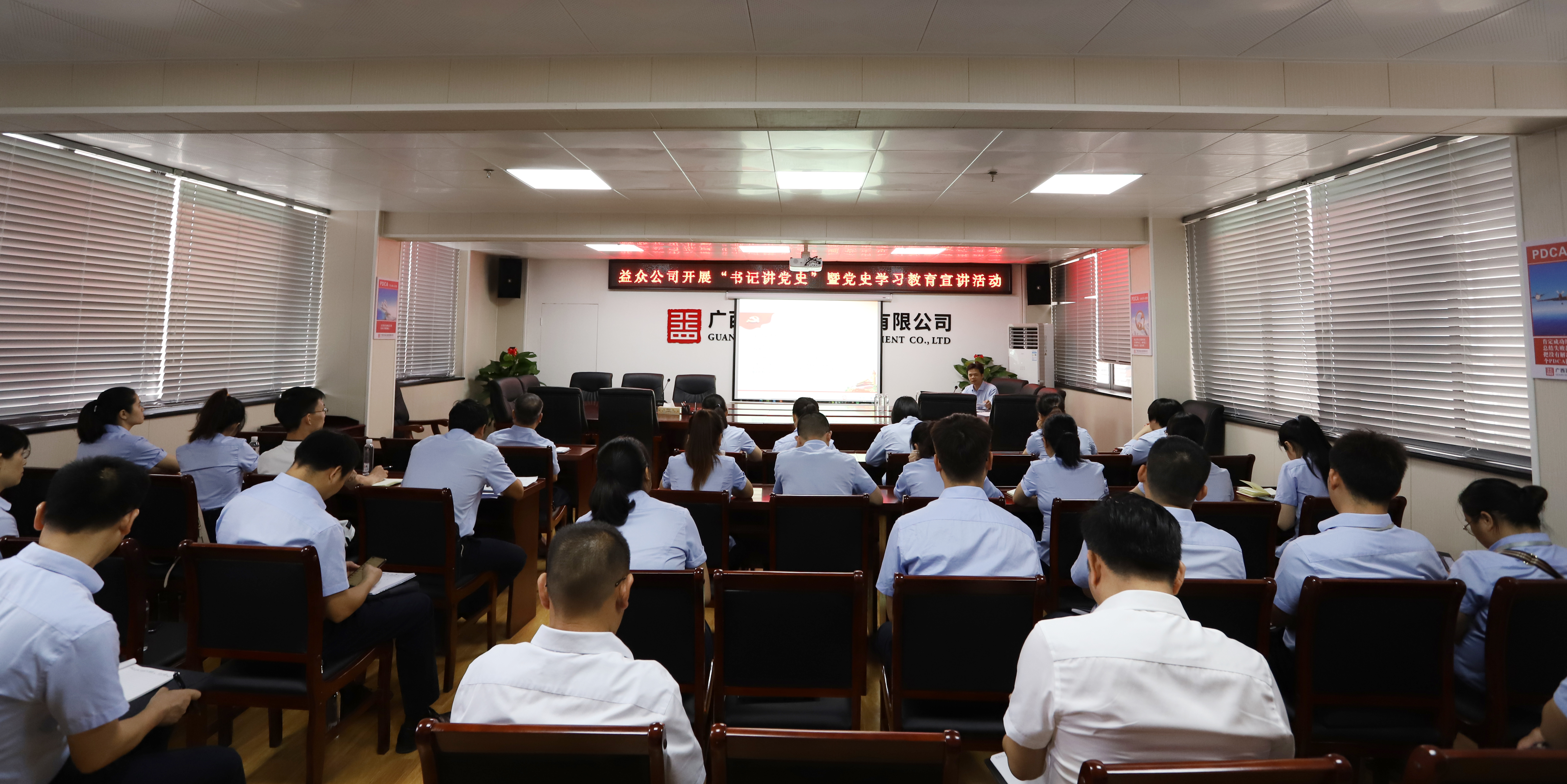 ????????為進(jìn)一步推動公司黨史學(xué)習(xí)教育扎實開展,切實提升黨史學(xué)習(xí)教育成效,根據(jù)右江區(qū)委黨史學(xué)習(xí)教育領(lǐng)導(dǎo)小組辦公室關(guān)于開展“書記講黨史”活動的工作部署,近日,益眾公司黨支部在城北辦公區(qū)11樓會議室開展了“書記講黨史”暨黨史學(xué)習(xí)教育宣講活動,公司全體黨員、入黨積極分子約40人參加活動。