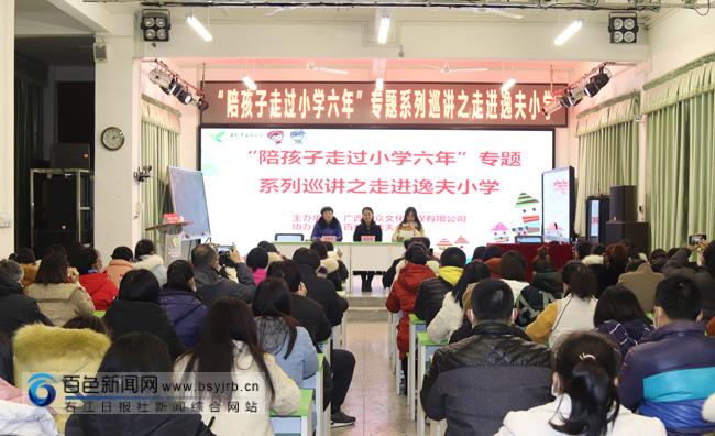 ????????百色新聞網(wǎng)右江區(qū)1月12日訊(通訊員 韋艷紅 黃晟嘉)教育的發(fā)展離不開學(xué)校、家庭、社會(huì)的共同努力。為了構(gòu)建良好的教育環(huán)境,1月7日,廣西益眾文化傳媒有限公司、百色市逸夫小學(xué)聯(lián)合舉辦“陪孩子走過小學(xué)六年”家庭教育進(jìn)校園巡講活動(dòng)。