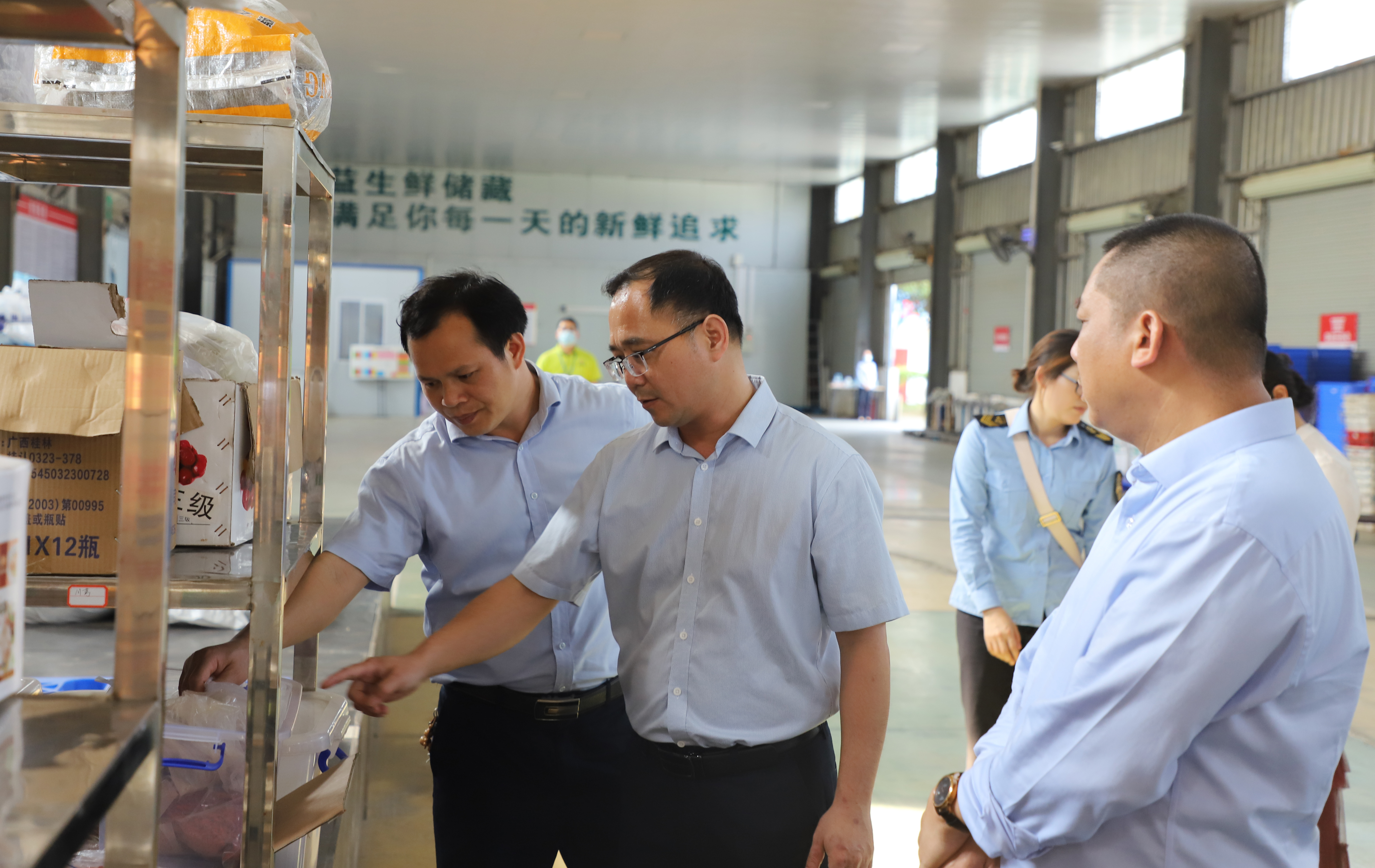 ????????3月19日,百色市市場(chǎng)監(jiān)督管理局總工程師黃承忠率隊(duì)到潤(rùn)益商貿(mào)公司開(kāi)展春季食品安全調(diào)研檢查工作,右江區(qū)市場(chǎng)監(jiān)管局、益眾公司等有關(guān)負(fù)責(zé)同志陪同調(diào)研。