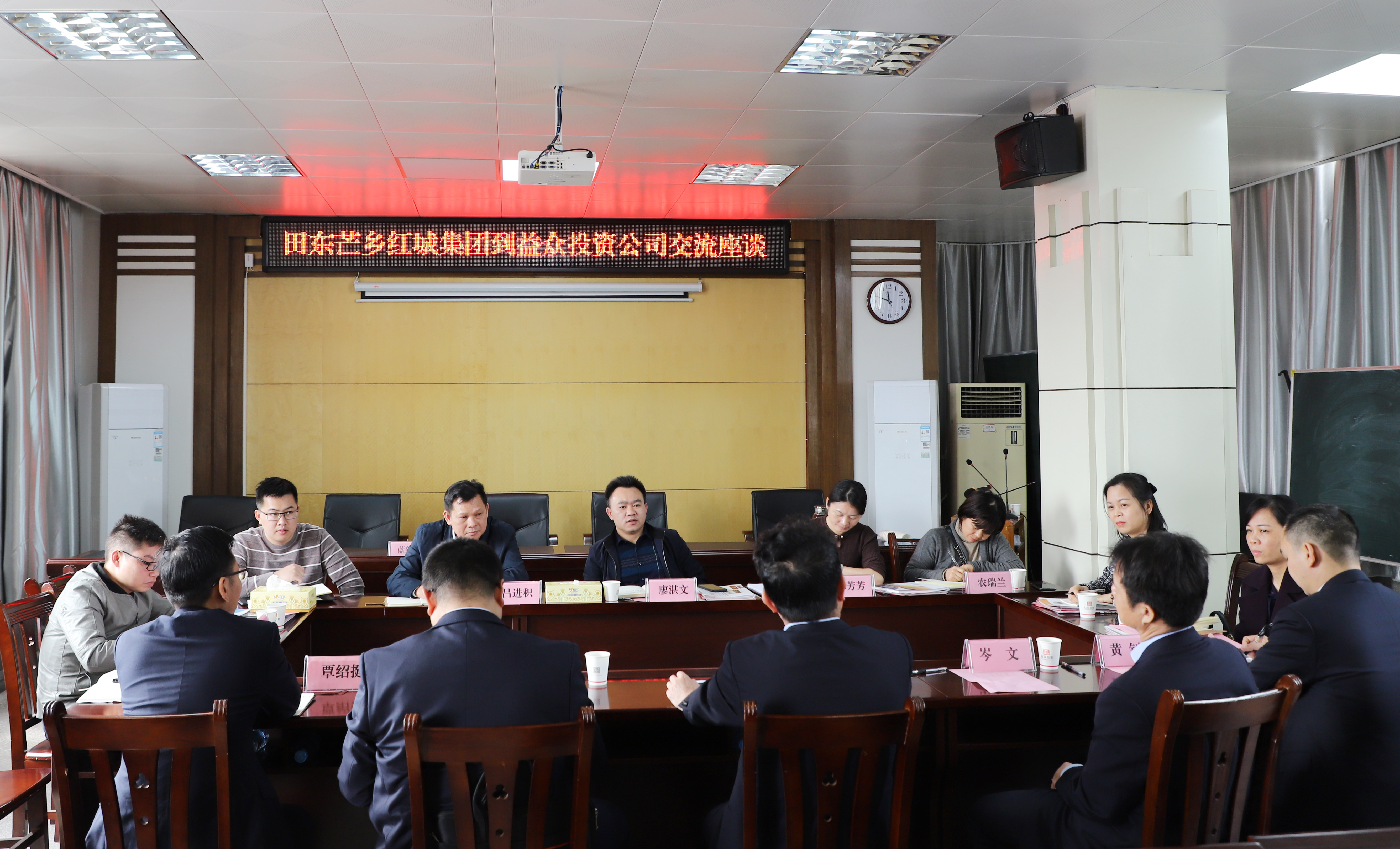 ????????2月20日,廣西田東芒鄉(xiāng)紅城投資集團(tuán)有限公司黨委副書記、董事長、總裁廖湛文一行8人到益眾公司考察交流,公司領(lǐng)導(dǎo)班子參加座談交流并介紹情況。公司有關(guān)部門負(fù)責(zé)人參加。