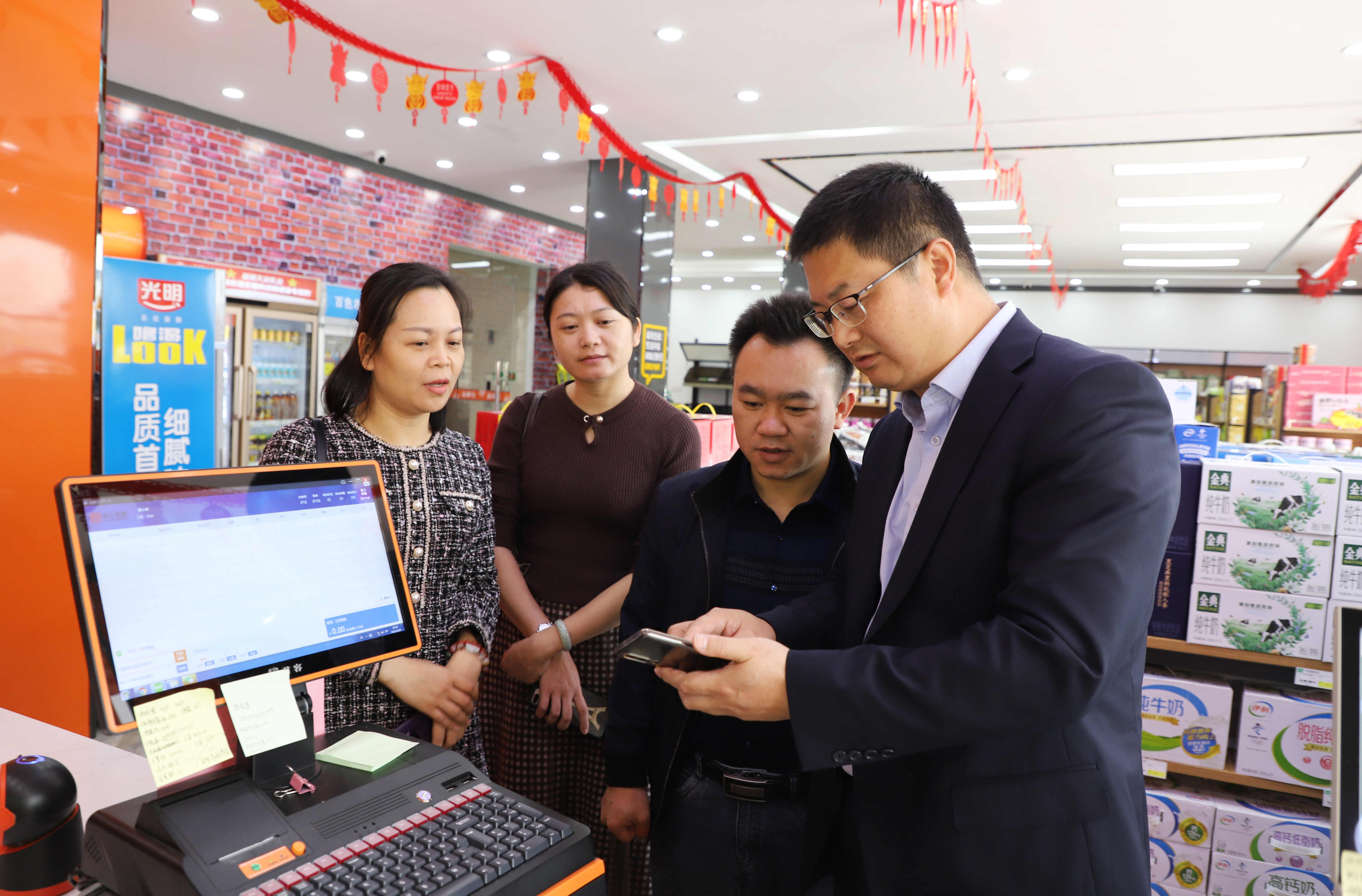 在益眾后勤公司“益鮮生”便利店,公司領(lǐng)導(dǎo)向考察組