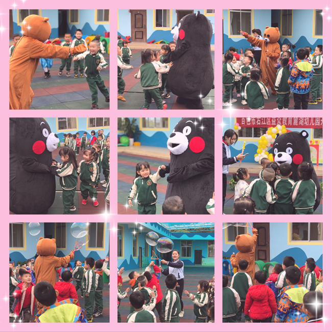 ????????開學(xué)典禮中,最讓大家期待的環(huán)節(jié)就是與可愛的玩偶朋友一起開泡泡派對,每位小朋友都勇敢地與玩偶朋友互動,露出興奮的笑臉。愿孩子們能樂享童真,快樂地成長!