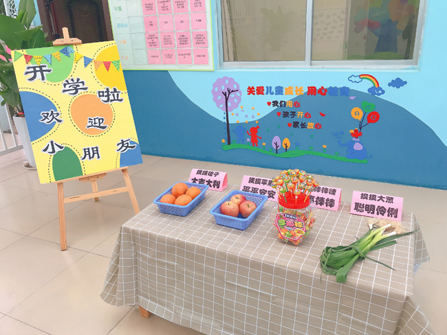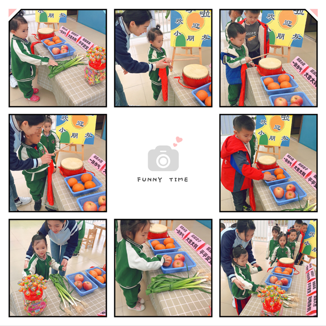 ????????上午7時40分,孩子們在家長的陪同下來到幼兒園大門口,進(jìn)園時敲響飽含濃濃祝福的小鼓,用小手觸摸大蔥、蘋果、桔子、棒棒糖,傳遞著益眾幼兒園對孩子濃濃的愛意和深深的祝福。