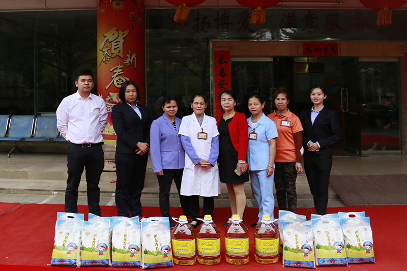 益眾托管公司的志愿者給華宇樂安老人院送上了米和油等慰問(wèn)品