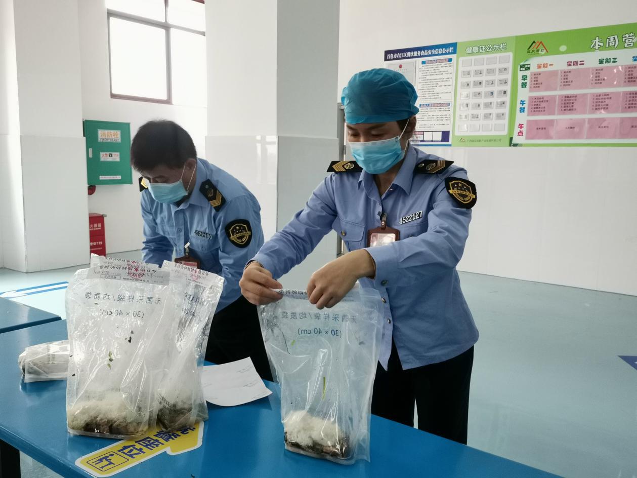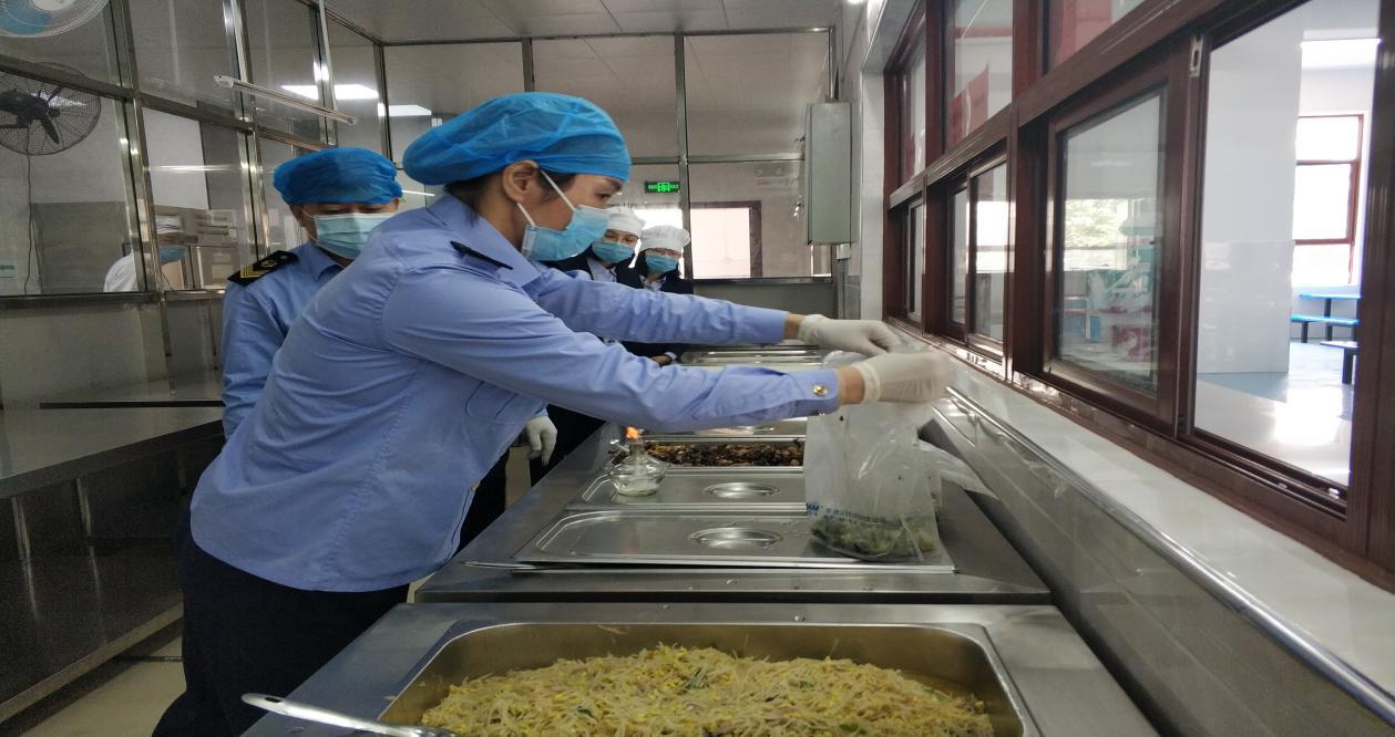 檢查組對當(dāng)日加工食材進(jìn)行安全抽樣檢測封存