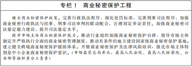 健全知識產(chǎn)權(quán)法律法規(guī)。開展知識產(chǎn)權(quán)基礎(chǔ)性法律研究。統(tǒng)籌推進(jìn)專利法、商標(biāo)法、著作權(quán)法、反壟斷法、科學(xué)技術(shù)進(jìn)步法、電子商務(wù)法等相關(guān)法律法規(guī)的修改完善。加強(qiáng)地理標(biāo)志、商業(yè)秘密等領(lǐng)域立法,出臺商業(yè)秘密保護(hù)規(guī)定。完善集成電路布圖設(shè)計(jì)法規(guī)。推進(jìn)修訂植物新品種保護(hù)條例。制定中醫(yī)藥傳統(tǒng)知識保護(hù)條例。完善與國防建設(shè)相銜接的知識產(chǎn)權(quán)法律制度。全面建立并實(shí)施知識產(chǎn)權(quán)侵權(quán)懲罰性賠償制度,加大損害賠償力度。研究建立健全符合知識產(chǎn)權(quán)審判規(guī)律的特別程序法律制度。適應(yīng)科技進(jìn)步和經(jīng)濟(jì)社會發(fā)展需要,依法及時推動知識產(chǎn)權(quán)法律法規(guī)立改廢釋。(中央宣傳部、最高人民法院、最高人民檢察院、科技部、工業(yè)和信息化部、司法部、農(nóng)業(yè)農(nóng)村部、商務(wù)部、國家衛(wèi)生健康委、市場監(jiān)管總局、國家國防科工局、國家林草局、國家中醫(yī)藥局、國家知識產(chǎn)權(quán)局、中央軍委裝備發(fā)展部等按職責(zé)分工負(fù)責(zé))