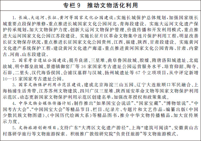 創(chuàng)新文物保護(hù)利用機(jī)制,加強(qiáng)文物和文化遺產(chǎn)保護(hù)利用,建設(shè)國(guó)家文物保護(hù)利用示范區(qū)。健全國(guó)有文物資源資產(chǎn)管理制度,推進(jìn)文物資源資產(chǎn)管理信息共享,部署開展相關(guān)試點(diǎn)工作。完善各方主體參與文物保護(hù)利用的支持政策,保障利益相關(guān)方合法權(quán)益。探索創(chuàng)新對(duì)文物資源密集區(qū)的支持方式。建設(shè)文物領(lǐng)域國(guó)家智庫。