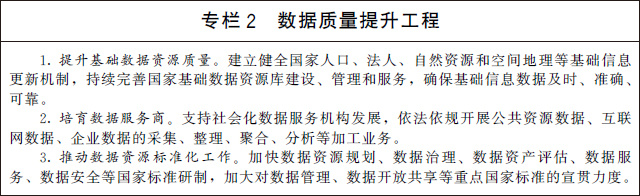 (一)強化高質(zhì)量數(shù)據(jù)要素供給。支持市場主體依法合規(guī)開展數(shù)據(jù)采集,聚焦數(shù)據(jù)的標(biāo)注、清洗、脫敏、脫密、聚合、分析等環(huán)節(jié),提升數(shù)據(jù)資源處理能力,培育壯大數(shù)據(jù)服務(wù)產(chǎn)業(yè)。推動數(shù)據(jù)資源標(biāo)準(zhǔn)體系建設(shè),提升數(shù)據(jù)管理水平和數(shù)據(jù)質(zhì)量,探索面向業(yè)務(wù)應(yīng)用的共享、交換、協(xié)作和開放。加快推動各領(lǐng)域通信協(xié)議兼容統(tǒng)一,打破技術(shù)和協(xié)議壁壘,努力實現(xiàn)互通互操作,形成完整貫通的數(shù)據(jù)鏈。推動數(shù)據(jù)分類分級管理,強化數(shù)據(jù)安全風(fēng)險評估、監(jiān)測預(yù)警和應(yīng)急處置。深化政務(wù)數(shù)據(jù)跨層級、跨地域、跨部門有序共享。建立健全國家公共數(shù)據(jù)資源體系,統(tǒng)籌公共數(shù)據(jù)資源開發(fā)利用,推動基礎(chǔ)公共數(shù)據(jù)安全有序開放,構(gòu)建統(tǒng)一的國家公共數(shù)據(jù)開放平臺和開發(fā)利用端口,提升公共數(shù)據(jù)開放水平,釋放數(shù)據(jù)紅利。