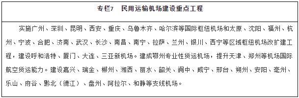 擴(kuò)大航空網(wǎng)絡(luò)覆蓋。推動區(qū)域機(jī)場群協(xié)同發(fā)展,建設(shè)京津冀、長三角、粵港澳大灣區(qū)、成渝等世界級機(jī)場群。適時啟動能力緊張樞紐機(jī)場改擴(kuò)建工程,強(qiáng)化樞紐機(jī)場綜合保障能力。合理加密機(jī)場布局,穩(wěn)步建設(shè)支線機(jī)場和專業(yè)性貨運樞紐機(jī)場,提升綜合性機(jī)場貨運能力和利用率。有序推進(jìn)通用機(jī)場規(guī)劃建設(shè),構(gòu)建區(qū)域短途運輸網(wǎng)絡(luò),探索通用航空與低空旅游、應(yīng)急救援、醫(yī)療救護(hù)、警務(wù)航空等融合發(fā)展。優(yōu)化航路航線網(wǎng)絡(luò),加強(qiáng)軍民航空管基礎(chǔ)設(shè)施建設(shè),推廣應(yīng)用空管新技術(shù)。