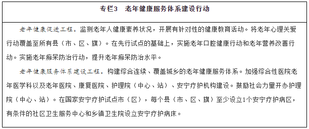增強醫(yī)療衛(wèi)生機構(gòu)為老服務(wù)能力。加強國家老年醫(yī)學(xué)中心建設(shè),布局若干區(qū)域老年醫(yī)療中心。加強綜合性醫(yī)院老年醫(yī)學(xué)科建設(shè)。支持醫(yī)療資源豐富的地區(qū)將部分公立醫(yī)療機構(gòu)轉(zhuǎn)型為護理院、康復(fù)醫(yī)院。推動醫(yī)療衛(wèi)生機構(gòu)開展老年綜合征管理,促進老年醫(yī)療服務(wù)從單病種模式向多病共治模式轉(zhuǎn)變。加快建設(shè)老年友善醫(yī)療機構(gòu),方便老年人看病就醫(yī)。