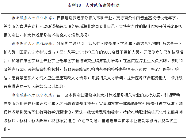 拓寬人才培養(yǎng)途徑。優(yōu)化養(yǎng)老服務(wù)專業(yè)設(shè)置,結(jié)合行業(yè)發(fā)展新業(yè)態(tài),動態(tài)調(diào)整增設(shè)相關(guān)專業(yè)并完善教學(xué)標準體系,引導(dǎo)普通高校、職業(yè)院校、開放大學(xué)、成人高校等加大養(yǎng)老服務(wù)人才培養(yǎng)力度。積極穩(wěn)妥推進1+X證書(“學(xué)歷證書+若干職業(yè)技能等級證書”)制度。大力推進養(yǎng)老領(lǐng)域產(chǎn)教融合,培育一批產(chǎn)教融合型養(yǎng)老企業(yè),支持院校和優(yōu)質(zhì)機構(gòu)共建合辦養(yǎng)老服務(wù)實訓(xùn)基地,探索將有條件的養(yǎng)老機構(gòu)發(fā)展成實習(xí)實訓(xùn)點。大力發(fā)展老年學(xué)、養(yǎng)老服務(wù)管理、健康服務(wù)與管理、中醫(yī)養(yǎng)生學(xué)相關(guān)專業(yè)本科教育。引導(dǎo)有條件的高校開設(shè)老年學(xué)、老年醫(yī)學(xué)、老年護理學(xué)、老年心理學(xué)、老年社會學(xué)、老年營養(yǎng)學(xué)、老年服務(wù)與管理、老年社會工作等課程,鼓勵高校自主培養(yǎng)積極應(yīng)對人口老齡化相關(guān)領(lǐng)域的高水平人才,加大新技術(shù)新應(yīng)用新業(yè)態(tài)的引才用人力度,為智慧健康養(yǎng)老、老齡科研、適老化產(chǎn)品研發(fā)制造等領(lǐng)域培養(yǎng)引進和儲備專業(yè)人才。落實醫(yī)師區(qū)域注冊制度,鼓勵醫(yī)務(wù)人員到醫(yī)養(yǎng)結(jié)合機構(gòu)(同時具備醫(yī)療衛(wèi)生資質(zhì)和養(yǎng)老服務(wù)能力的醫(yī)療衛(wèi)生機構(gòu)或養(yǎng)老機構(gòu))執(zhí)業(yè)。在養(yǎng)老機構(gòu)舉辦的醫(yī)療機構(gòu)中工作的醫(yī)務(wù)人員,可參照執(zhí)行基層醫(yī)務(wù)人員相關(guān)激勵政策。